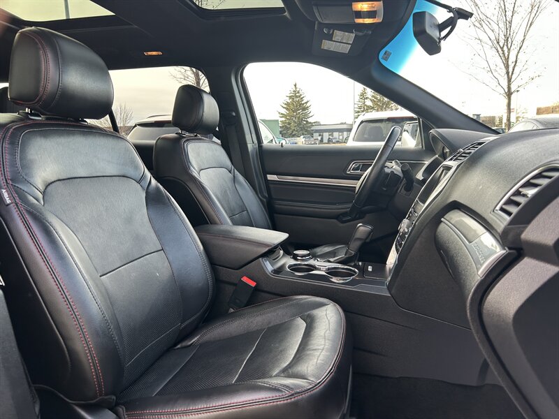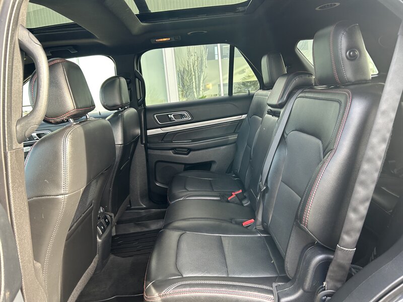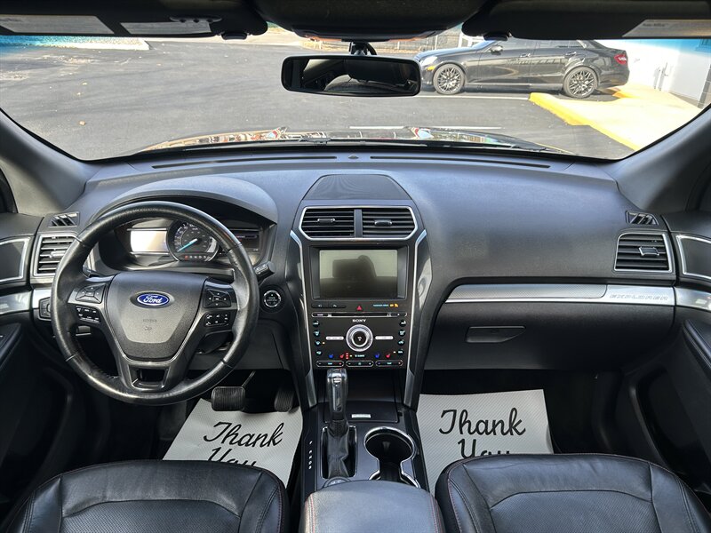 Power, performance, and style come together perfectly in this 2017 Ford Explorer Sport — a three-row SUV built to impress. Under the hood lies a 3.5L EcoBoost V6 engine pushing out 365 horsepower and 350 lb-ft of torque, paired with a smooth 6-speed automatic transmission and intelligent all-wheel drive for confident traction in any condition. The Sport trim delivers a distinct look with blacked-out exterior accents, 20-inch machined alloy wheels, and a more aggressive stance that sets it apart from the rest. Inside, the cabin offers premium leather-trimmed seats with red stitching, a heated steering wheel, SYNC 3 infotainment with navigation, and a premium Sony sound system — all designed for ultimate comfort and connectivity.