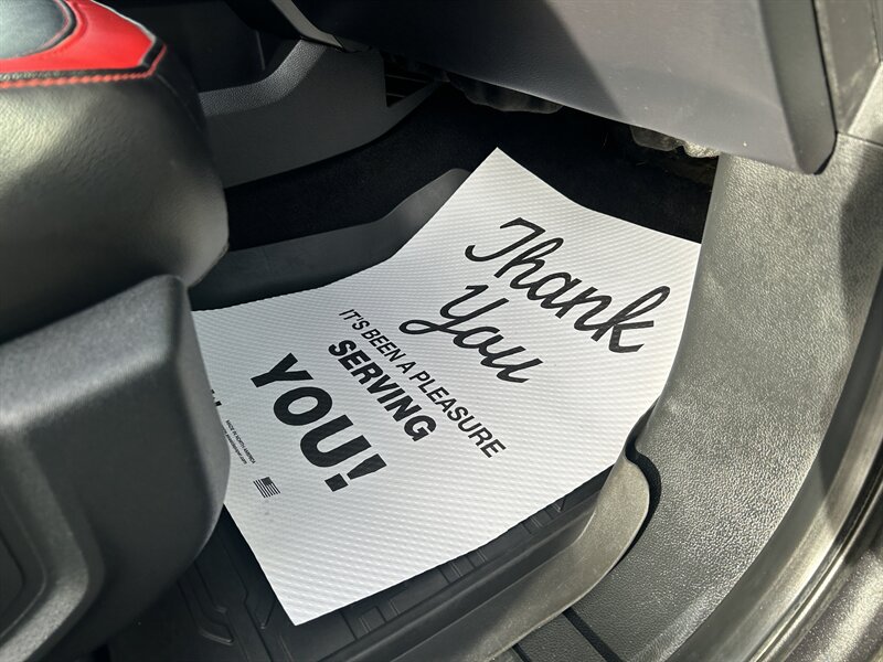 From the moment you step inside, you’ll feel the difference: leather-trimmed seats with red accents, vivid red stitching across the instrument panel and console lid, and a premium feel that elevates the cabin beyond standard offerings.