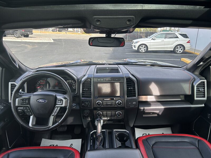 Experience strength and style with this striking 2018 Ford F-150 Lariat, powered by the robust 3.5 L EcoBoost V6 for impressive performance and efficiency. This particular truck features the coveted Special Edition Package, which introduces eye-catching red interior accents, a red-stitch leather-wrapped steering wheel, and unique red-accented exterior badging for a bold, sporty look.