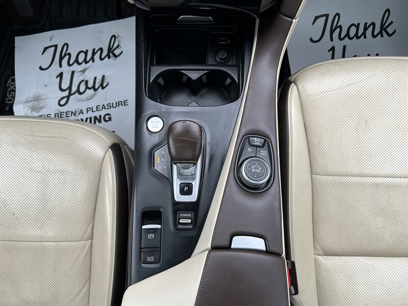 Elevate your drive with this stunning 2019 Infiniti QX50 Essential — a luxurious blend of performance, innovation, and design. Powered by Infiniti’s revolutionary 2.0L VC-Turbo engine, this intelligent crossover delivers both exhilarating power and remarkable fuel efficiency. The all-wheel-drive system ensures confident handling in all conditions, while the smooth CVT transmission makes every drive effortless. Inside, the QX50 Essential welcomes you with premium leather seating, a panoramic moonroof, heated front seats, dual touchscreen displays, navigation, and a premium Bose audio system for an immersive experience. With advanced safety features like blind-spot warning, intelligent cruise control, and around-view monitoring, you’ll enjoy peace of mind on every trip.
