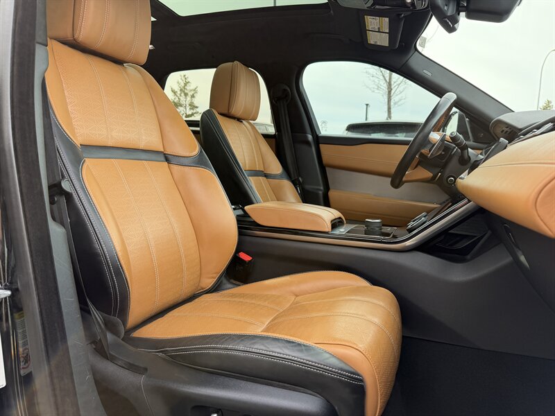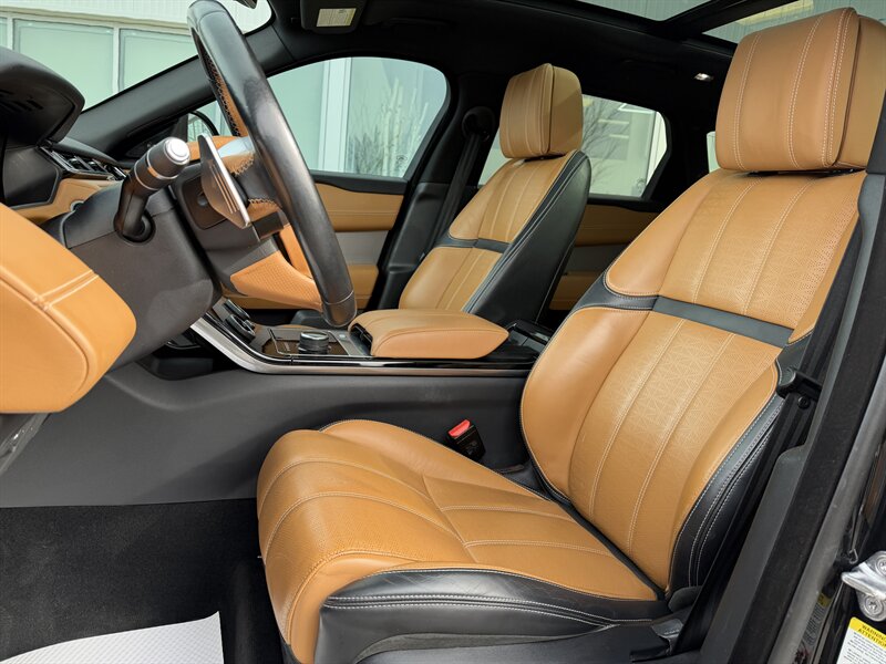 Step inside and you’re welcomed by a meticulously crafted interior featuring premium leather seating, heated and cooled front seats, a panoramic glass roof, and dual touchscreen infotainment with navigation. With Meridian premium audio, configurable ambient lighting, and advanced driver assistance features, every drive feels first class. Whether you're commuting in the city or heading out on a weekend escape, this Velar offers the perfect balance of luxury, technology, and capability.