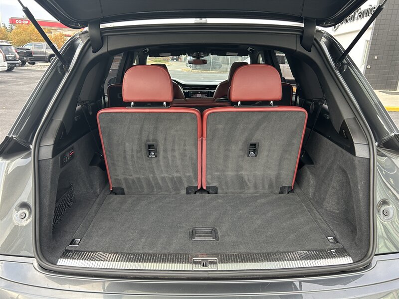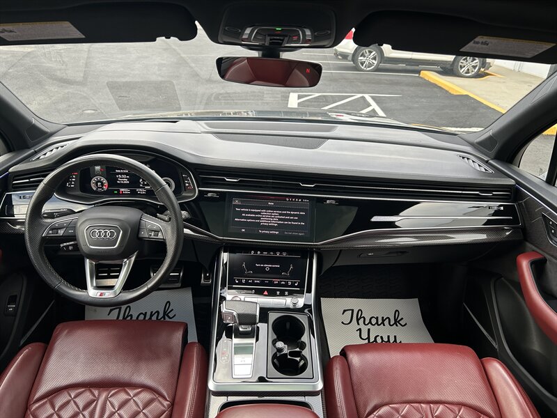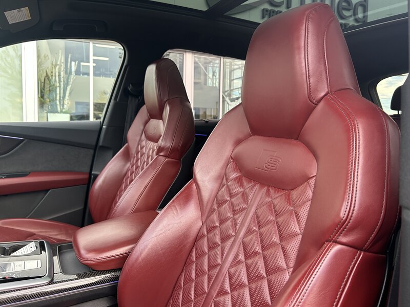 Experience German engineering at its finest with this 2021 Audi SQ7, finished in a breathtaking Daytona Gray Pearl exterior paired with a striking Arras Red leather interior. Beneath its bold, athletic design lies a 4.0L twin-turbocharged V8 engine producing an exhilarating 500 horsepower and 568 lb-ft of torque, delivering sports-car performance in a full-size luxury SUV. Audi’s renowned quattro all-wheel-drive system ensures maximum grip and control, while the adaptive air suspension and all-wheel steering provide a smooth yet agile ride. Inside, the cabin exudes sophistication, with premium diamond-stitched Arras Red Valcona leather seats, a fully digital Virtual Cockpit, dual touchscreen MMI infotainment system, and a Bang & Olufsen 3D sound system. This SQ7 blends performance, luxury, and practicality effortlessly, offering three rows of seating, a panoramic sunroof, and advanced driver assistance technology for an unmatched driving experience.
