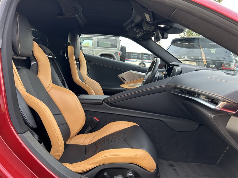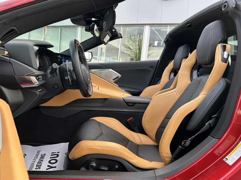 The 2021 Chevrolet Corvette Stingray 2LT with the coveted Z51 Performance Package is the ultimate expression of precision engineering and power. Beneath its sculpted mid-engine design roars a 6.2L V8 delivering 495 horsepower and 470 lb-ft of torque, paired with a lightning-fast 8-speed dual-clutch transmission for seamless, exhilarating performance. The Z51 package enhances this Corvette even further with upgraded Brembo brakes, performance suspension, electronic limited-slip differential, performance exhaust, and a high-performance rear axle ratio—giving you track-ready handling and control. Inside, the 2LT trim pampers you with a premium leather interior, heated and ventilated seats, a head-up display, Bose 14-speaker surround system, and a performance data recorder. Its bold stance, aggressive aerodynamics, and unmistakable presence make it a true showstopper from every angle.